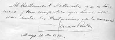 | Al Naturista oasis en una ciudad llena de sombras. A Domingo Fuenzalida, sacerdote de este oasis. | ![]() |