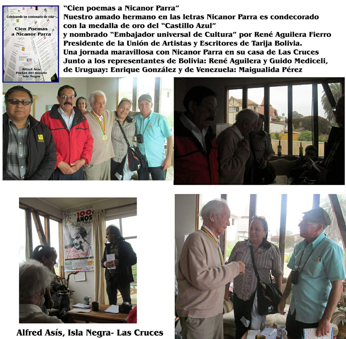 HOME ---- NICANOR PARRA RECIBE LA OBRA EN SU HOMENAJE EN LA CASA DE LAS CRUCES